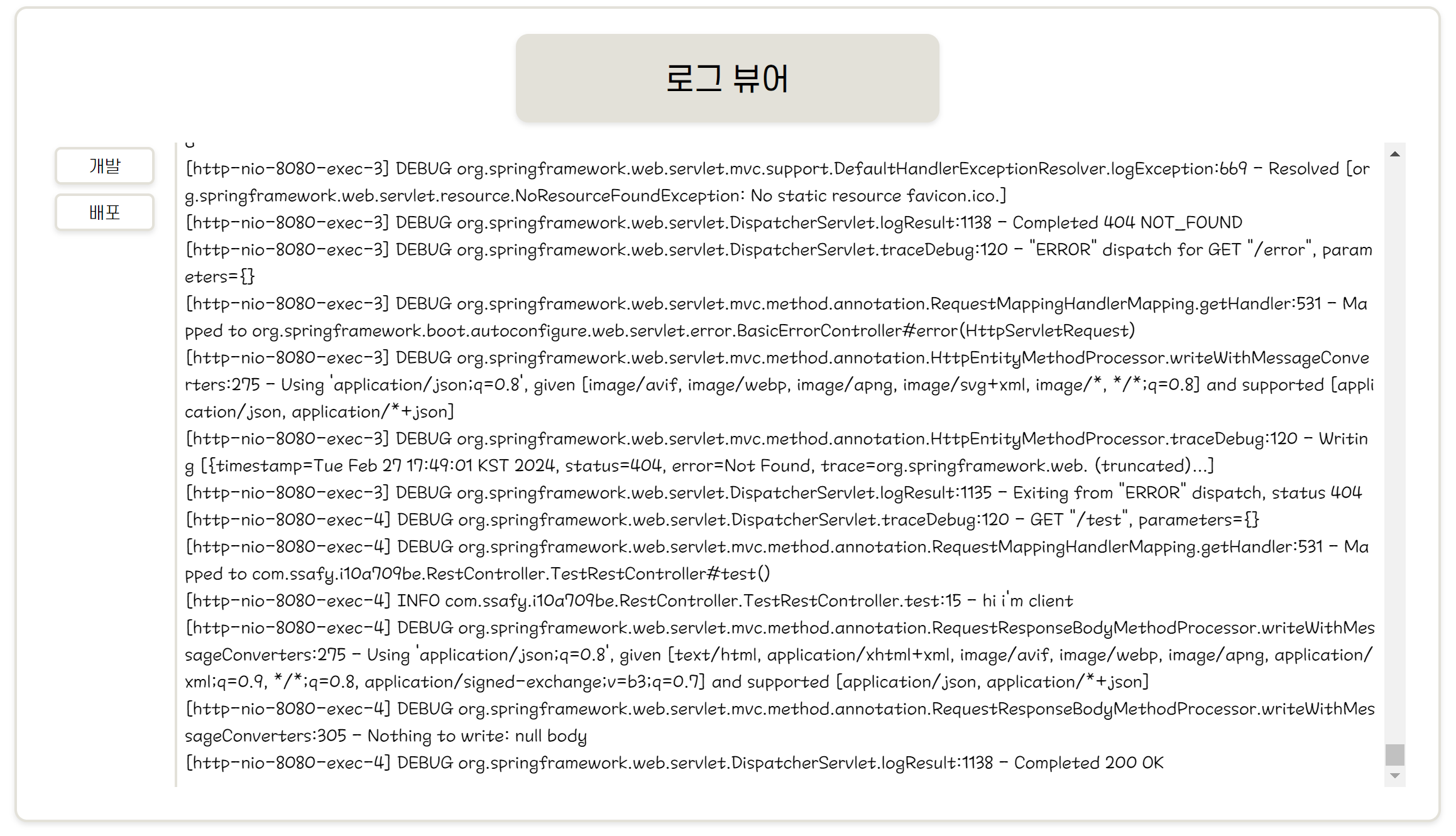 현재 저는 다음 프로젝트인 특화 프로젝트에 기획 단계에 있습니다. 팀원들과 기획을 준비하며, 팀 외적으로 팀원들이 개발에 집중할 수 있도록 Backend단의 DEMO 파일 구성과 만들려고 했던 로그 뷰어에 제작에 대한 업무를 진행하였으며, 이 과정에서 로그 뷰어에 대한 이야기를 해보려고 합니다.